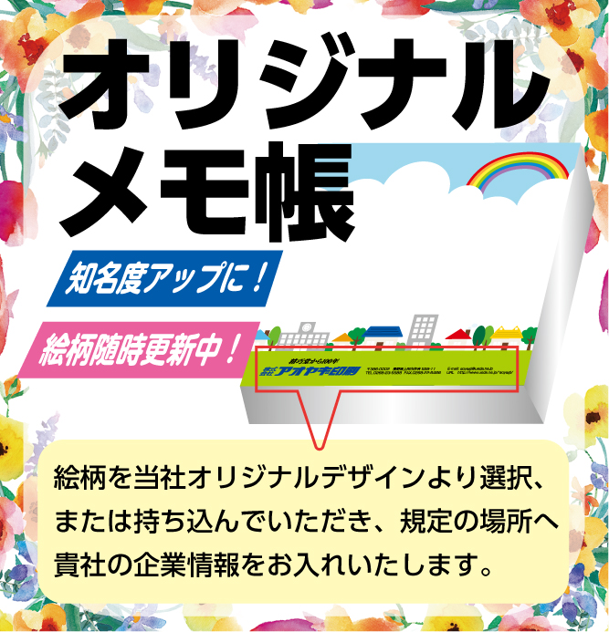 メモ帳は365日、毎日貴社をPRできるツールです。